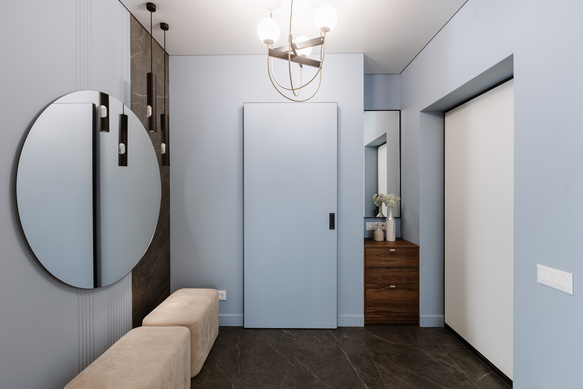 Начинаем с входной группы и гостиной — общественной части квартиры.