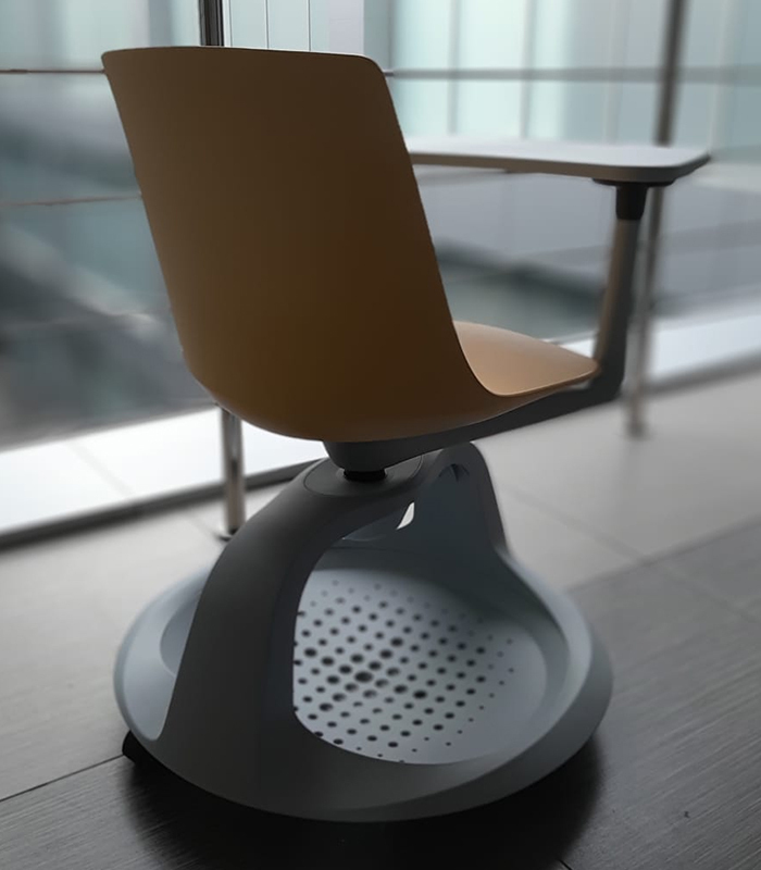 Пластиковая двухлучевая база высотой 310 мм (без колёс), общий диаметр — 670 мм.
